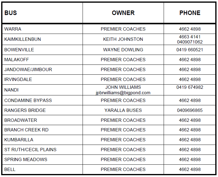 Parking is available at the bus interchange on the Warrego Highway and in the streets surrounding the school.